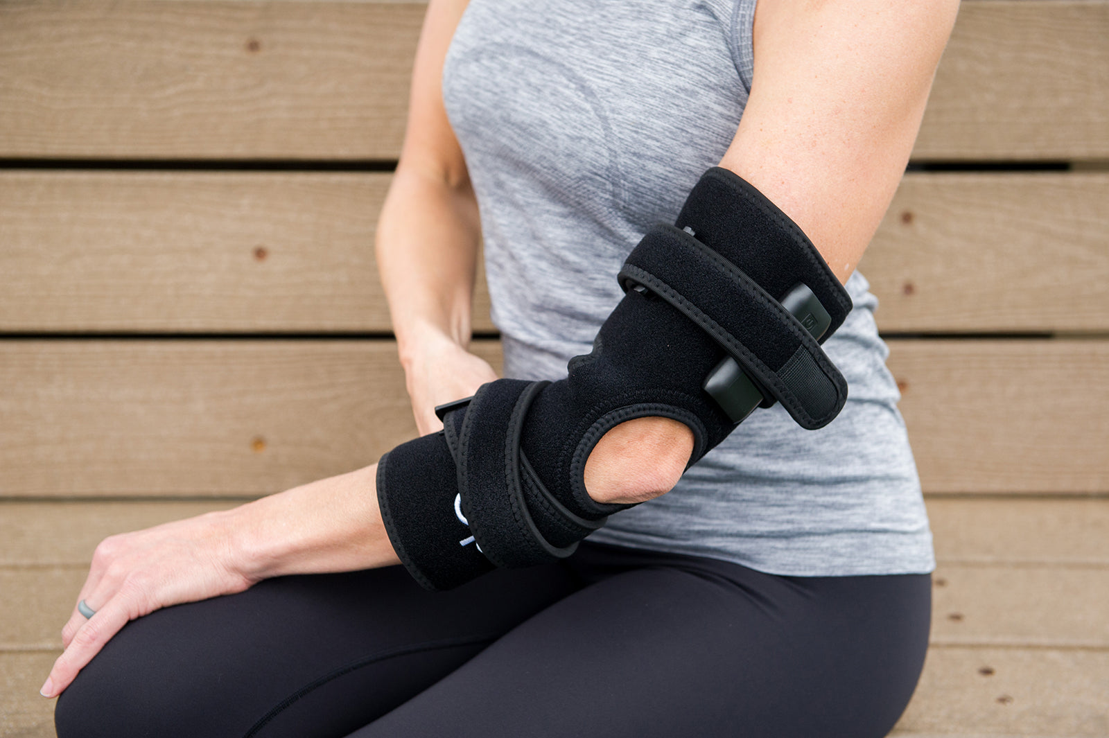 6. For treatment areas such as the elbow or shoulder, it may be easier to first pull the straps through the loop, then put the arm through and fasten the straps.