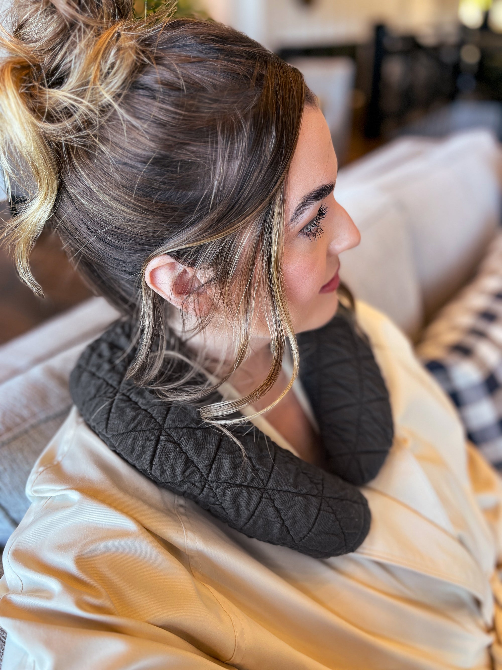 Soft and billowy as a cloud, this luxurious herbal neck wrap delivers the peak of coziness. Perfectly proportioned and weighted, it gently contours the neck while a curated blend of herbs imparts aromatherapy for relaxation.