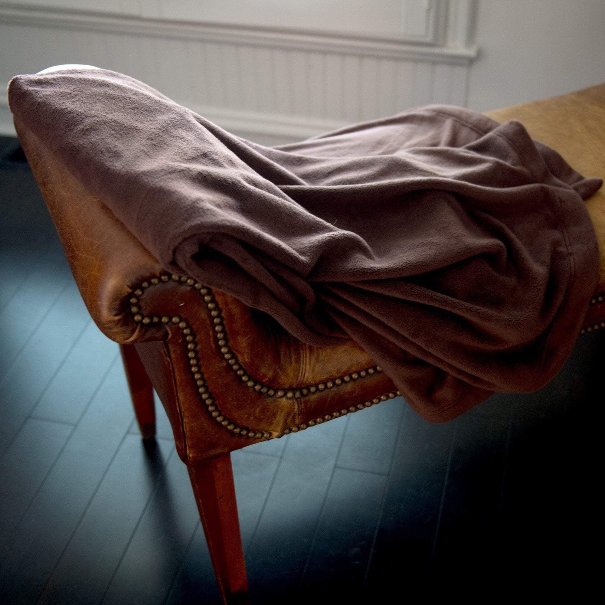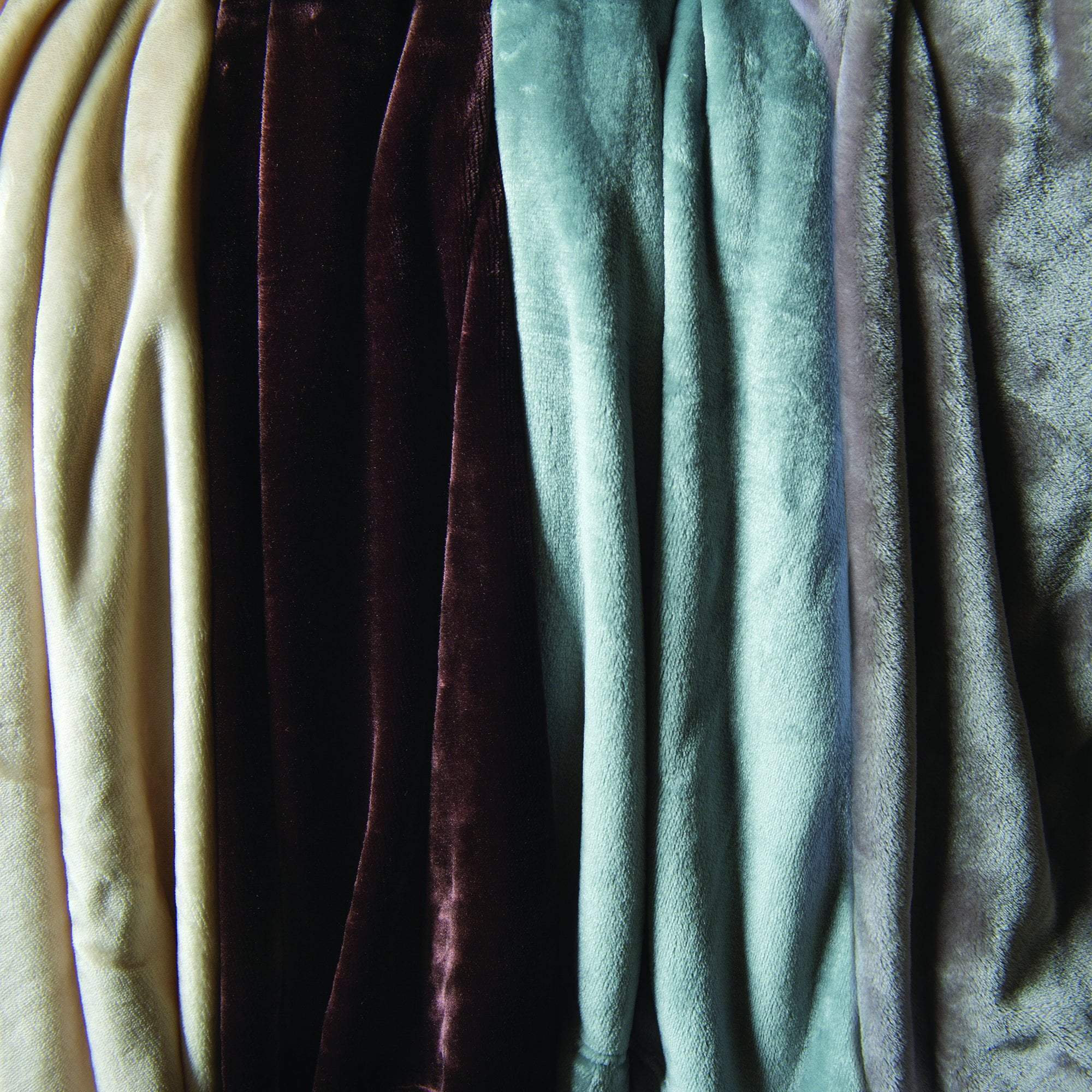 This cozy Sposh Chelour Blanket has an exceptionally soft, creamy texture that actually gets softer every time it's washed while retaining its shape and size. 350-gram microfiber. 60” L x 87” W.